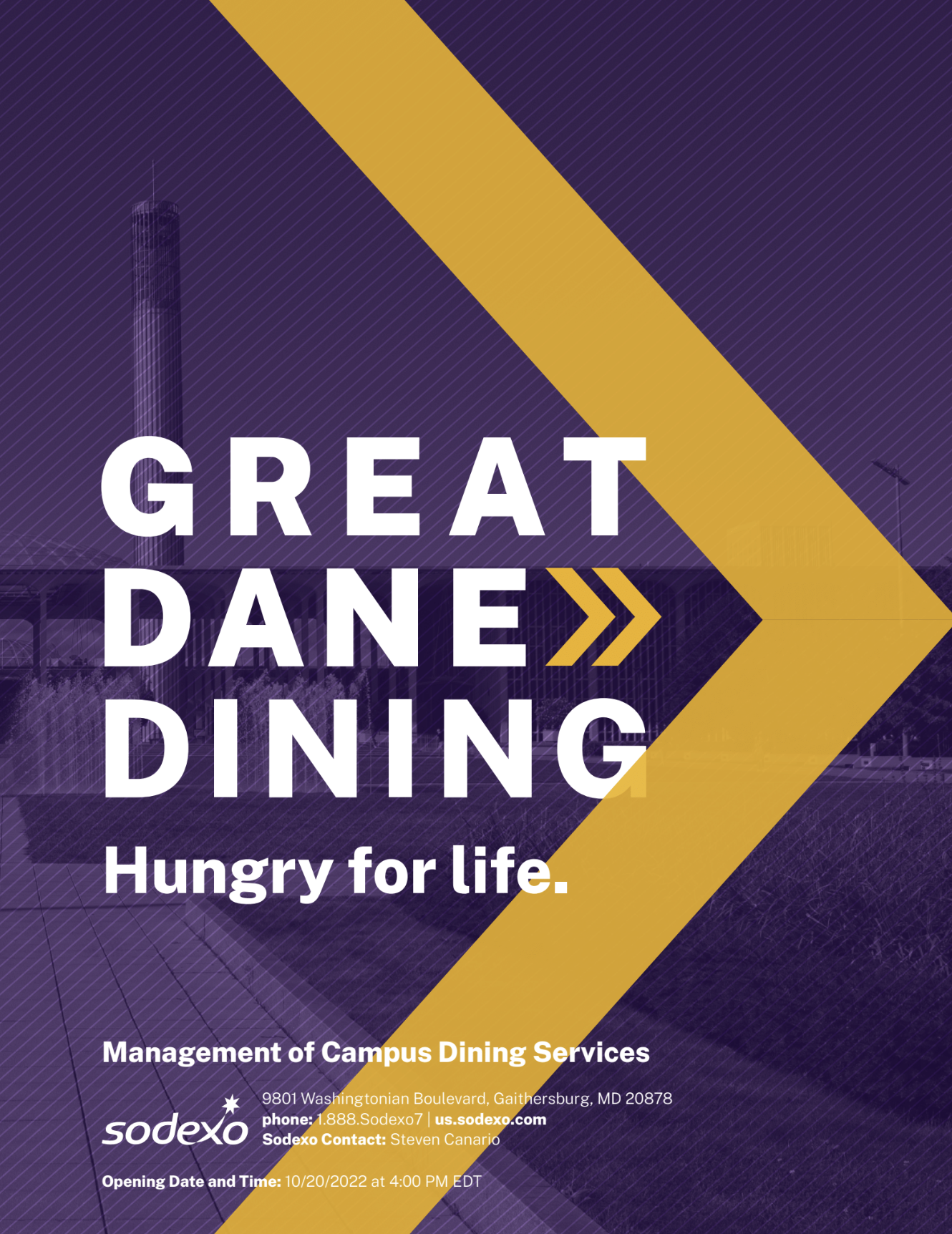 With the 100-page-long proposal complete and packed with plans for the future of Great Danes, UAlbany sealed the deal with Sodexo. With our messaging, branding and design help, we played a part in the food and hospitality services company securing a decade-long, multi-million dollar contract with the New York University.